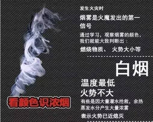 如果煙不緊不慢地,晃晃悠悠的,那就說明火已經燒的差不多了,沒勁了,這威脅就不大了,或者說明火源不在你附近。