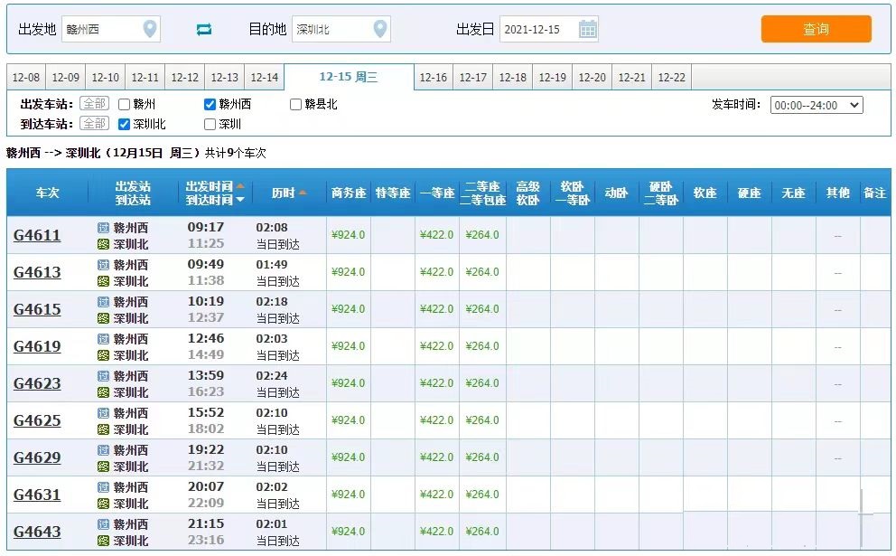 贛州西到深圳北車票僅264元!