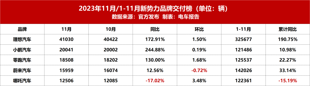 其它品牌方面,理想汽車和埃安進入前五,其中,埃安以0.81萬輛位居榜單第五名。大眾汽車、長安汽車、問界、小鵬汽車和零跑汽車也進入榜單前十中,而蔚來汽車是“蔚小理”陣營中唯一一家落榜前十的車企。