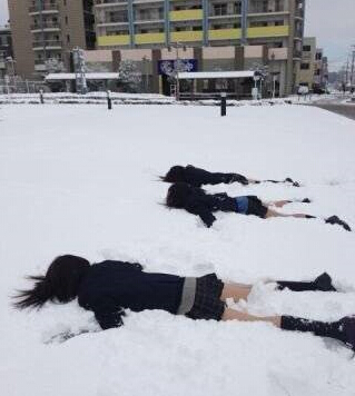 可是,正當你瑟瑟發抖時,忽聞日本妹子仍然只憑一條短裙闖天下!感受一下,人家白花花的大腿與雪花的親密接觸,島國妹子你們是有特異功能嗎?