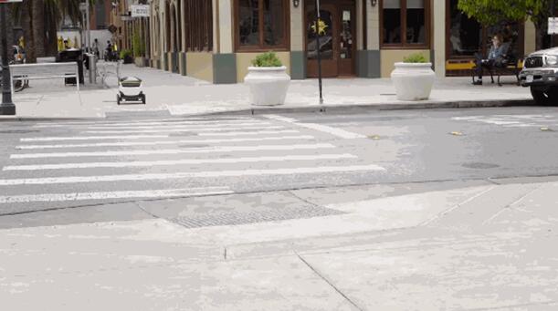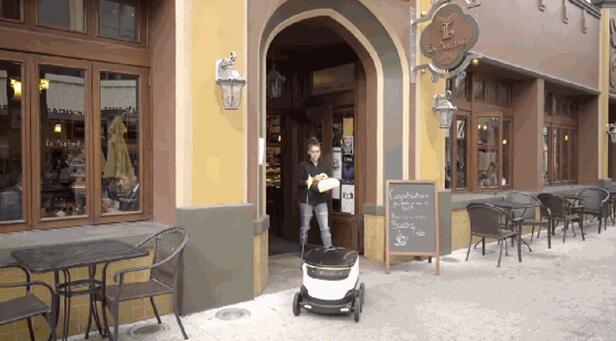 這款機器人會根據(jù)指定的路線到達用戶所在地。在此過程中,機器人過馬路,走小路,看似非常穩(wěn)重。