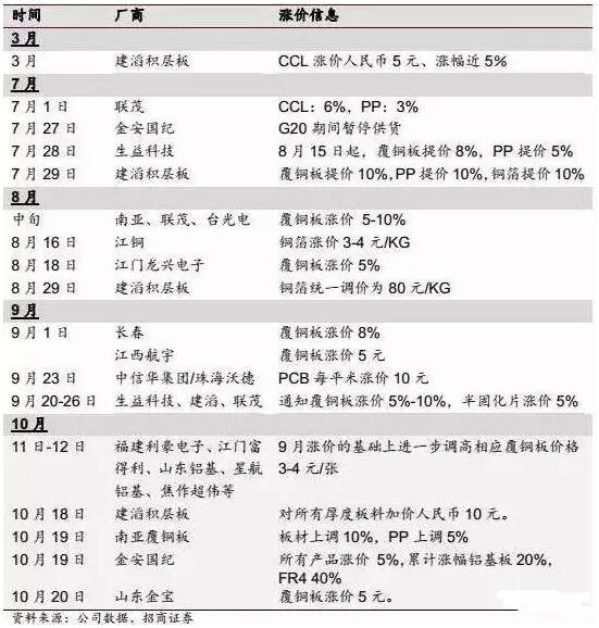 據悉,2016年用于覆銅板的標準銅箔每月缺貨3300噸,在覆銅板企業拿不到貨,下游需求又如此火爆的情況下,企業提價就有了理由。